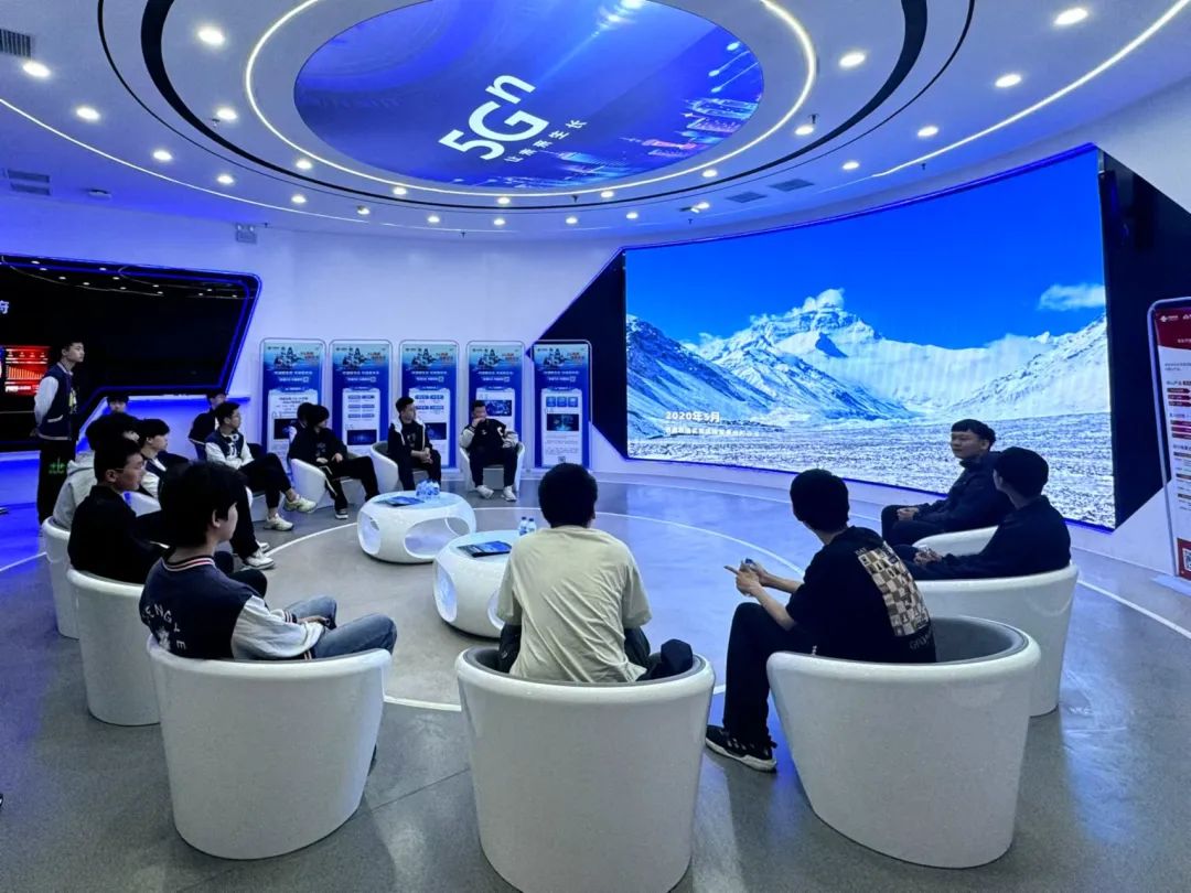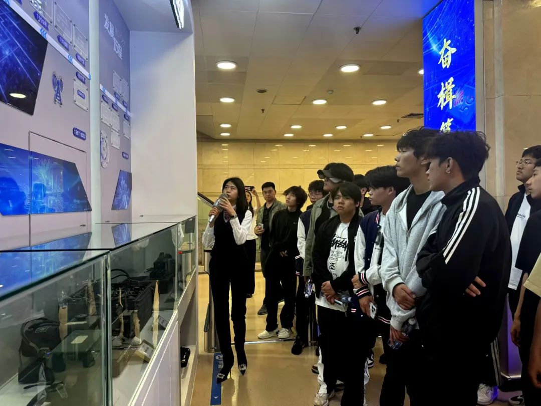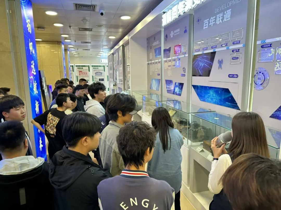 在展厅导览中,学生们深入了解了通信百年演变史、大连电信40年的发展历程及大连联通在数字化转型中的实际应用。展厅展示了丰富的数字技术创新案例和项目成果,使学生们对数字化转型有了全面的认知。