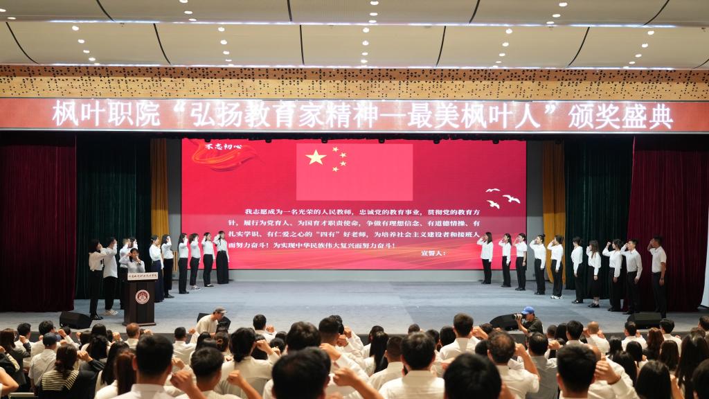紧接着,颁奖仪式将盛典推向了高潮。在个人奖项中,“最美教师”、“最美辅导员”、“最美教育工作者”、“最美工勤”以及“最美星榜样”逐一揭晓,他们以实际行动践行了教育者的崇高使命,展现了枫叶人的卓越风采。而在集体奖项方面,“高水平专业群(专业团队)奖”与“教学成果奖”的颁发,则是对团队协作与创新精神的最高赞誉,激励着更多团队勇攀高峰,共创辉煌。