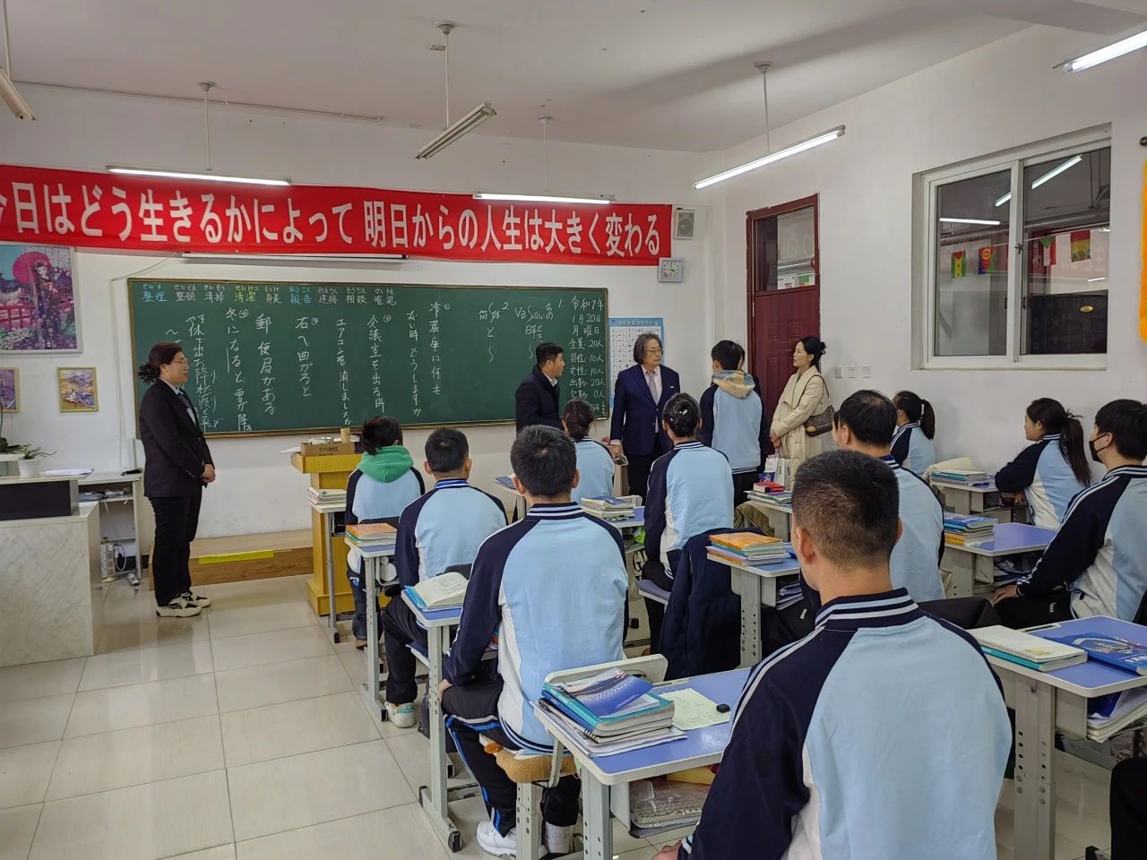 韩强主任与庞成花主任介绍了信业达日语培训的发展史、以及大连枫叶职业技术学院新老校区的交替、海外办学等相关内容。随后,带领吉井胜行先生参观了大连信业达职业培训的日语班授课现场。课堂上,日语班级学生以熟练的日语积极与日方客人展开对话,充分展现了学生优秀的跨文化交际能力。