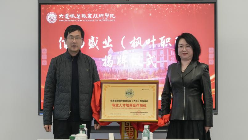 与此同时,大连枫叶职业技术学院院长杨捷与职教委副主任邢梦涵郑重地为《专业人才培养合作单位》揭牌,这一仪式的圆满完成,标志着集团与中国企业文化促进会职教委在校企合作方面达成深度意向。双方均明确表态,将以此次揭牌为契机,全方位、多层次地加强沟通交流与协同合作,全力以赴促进教育事业与产业发展的深度融合与无缝对接。展望未来,双方将在人才培养的摇篮中精耕细作,在科研合作的前沿阵地上携手攻坚,在实习实训的实战舞台上精心打磨,致力于为行业培育出一批又一批高素质、高技能的领军人才,为行业的持续繁荣提供源源不断的智力支持。