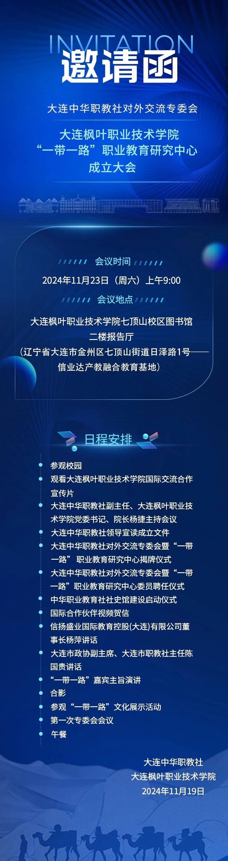 大连中华职教社对外交流专委会暨大连枫叶职业技术学院“一带一路”职业教育研究中心成立大会邀请函
