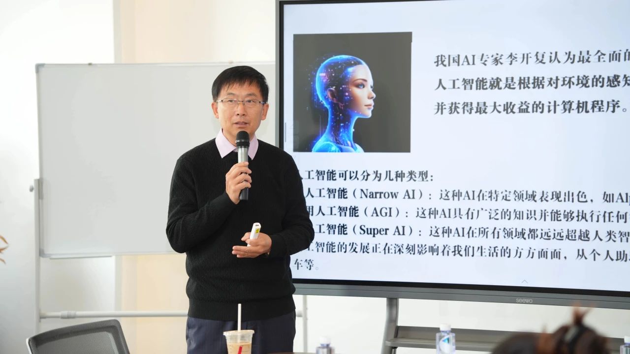 信息中心薛飞主任围绕当下热门的 AI 技术赋能展开了深入讲解,为学院各个部门在未来工作中利用人工智能技术提高效率和质量开启了全新视角。院长杨捷更是将 AI 的发展方向与愿景和学院发展紧密联系起来进行深度剖析,为学院未来的发展明确了方向。