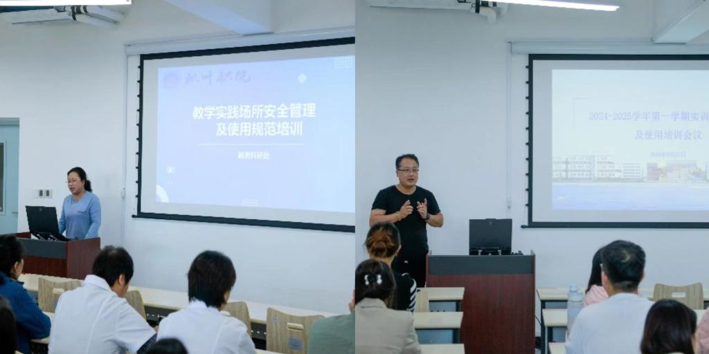 保卫处吕运福老师表示希望参训教师能够将把所学知识和技能应用到日常教学和管理工作中,不断提升实训场所的安全管理水平,为全院师生的安全学习和教学工作的顺利开展保驾护航。此次会议不仅增强了全院教师的安全意识和责任感,也为新学期实践教学场所的安全管理工作奠定了坚实的基础。展望未来,学院将继续秉持“安全第一,预防为主”的原则,不断完善实践教学场所安全管理机制,为构建更加安全、和谐、高效的实训教学环境以及培养高素质技能型人才提供坚实保障。