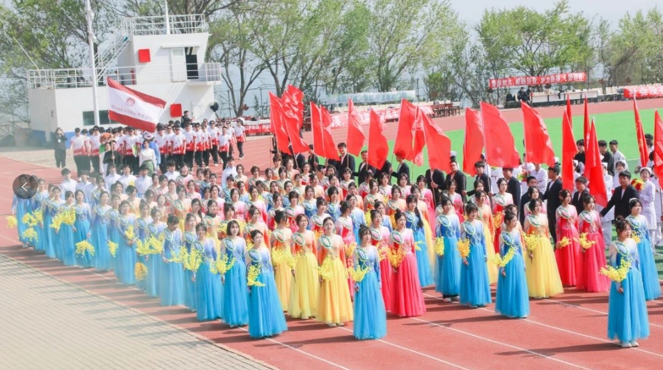 团体操《鼓韵》《旗心舞动》表演:经济管理与服务系