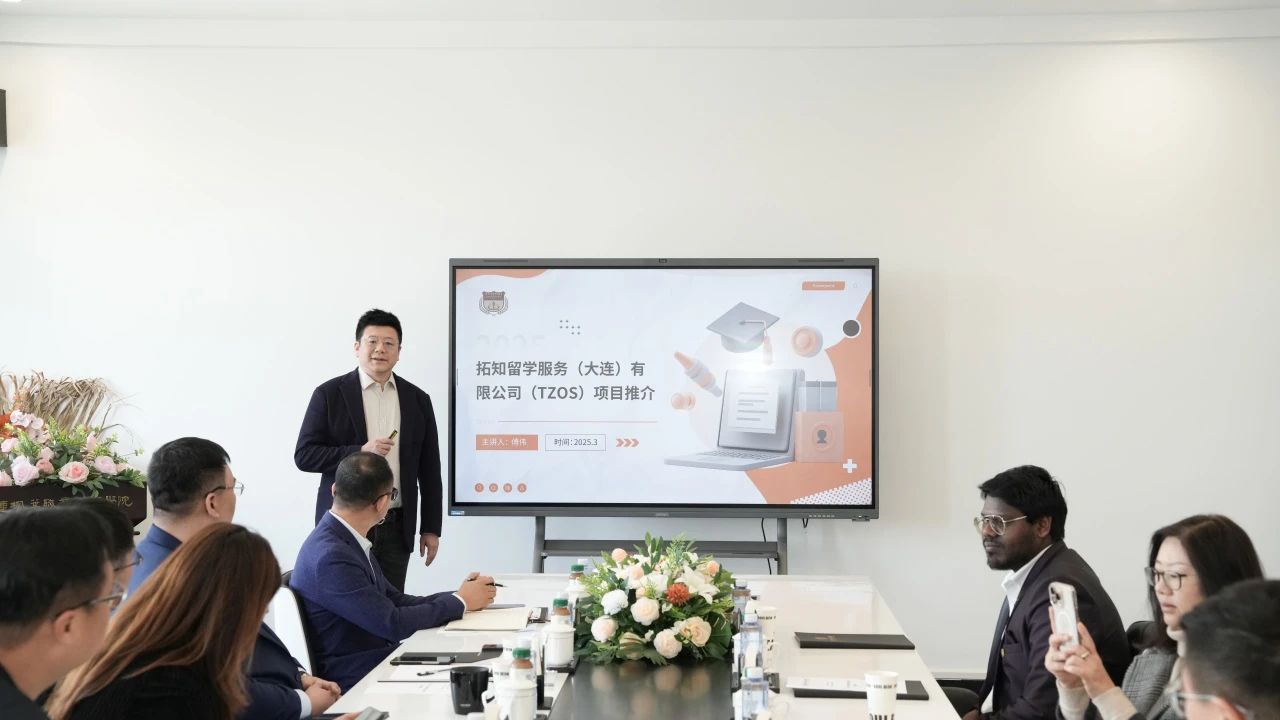 拓知总经理傅伟对拓知出国服务(大连)有限公司进行了详细介绍。双方就“一带一路”来华留学生培养项目的协议内容展开了研讨与座谈,就相关细节进行了充分交流与沟通,为项目的顺利推进奠定了坚实基础。