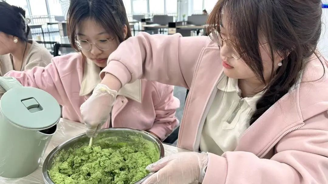4月1日,一站式学生社区以小课堂为依托,举办了制作二十四节气特色美食——青团的活动。活动现场,学生们热情高涨,全身心投入到青团制作中。大家围坐在一起,揉面、包馅、塑形,每一个步骤都充满了期待与欢乐。当青团制作完成,学生们带着满满的诚意,将这些饱含心意的青团送给了朝夕相伴的舍务老师们。这一份份青团,不仅是美食的传递,更是感恩之情的表达。而在参与活动的人群中,党员教师和一站式社区辅导员们积极发挥先锋模范作用,他们耐心地指导学生制作青团,和学生们一起交流清明的习俗,在传统节日的氛围中传递着党的关怀与温暖 ,让学生们在活动中不仅收获了技能,更感受到了党组织的凝聚力。