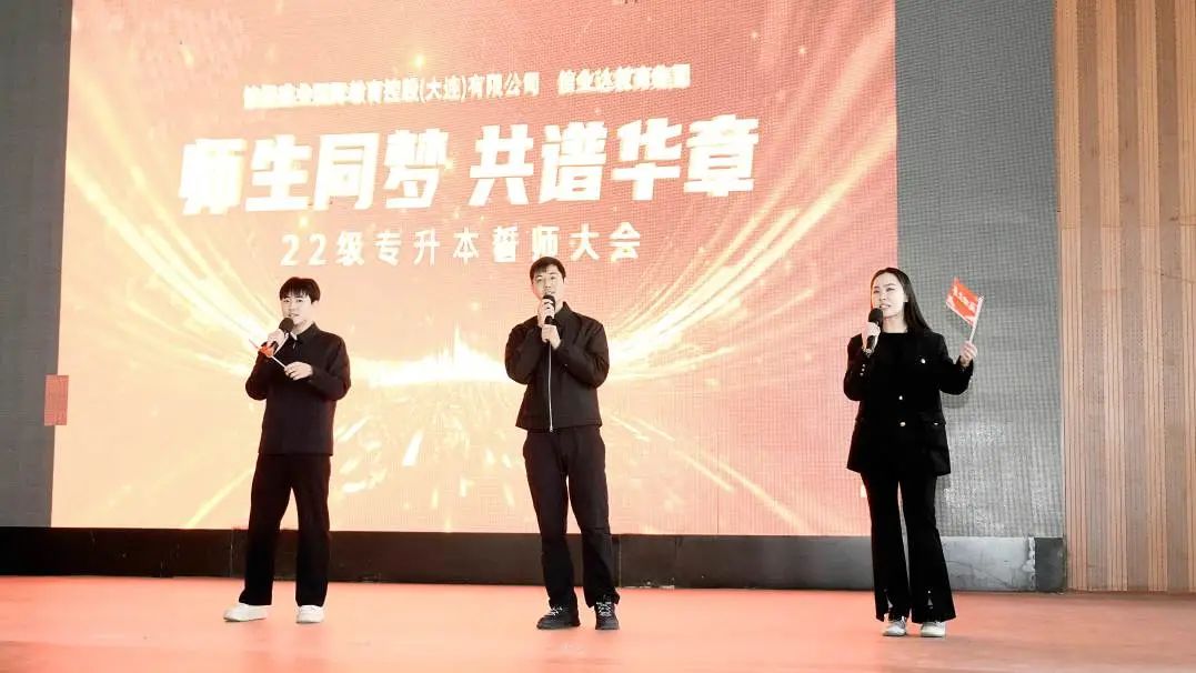 出席本次誓师大会的领导和嘉宾有:集团董事、继续教育与国际合作交流学院院长兼智能装备与信息系主任王忠泽,继续教育与国际合作交流学院副院长周鋆,经济管理与服务系主任王晓琳,以及各系部专科辅导员和专升本辅导员、干事。大会由诸多环节组成,包含了院长寄语、领导祝福、导师发言、学员宣誓、文艺表演等,接下来让我们一睹誓师大会的风采!