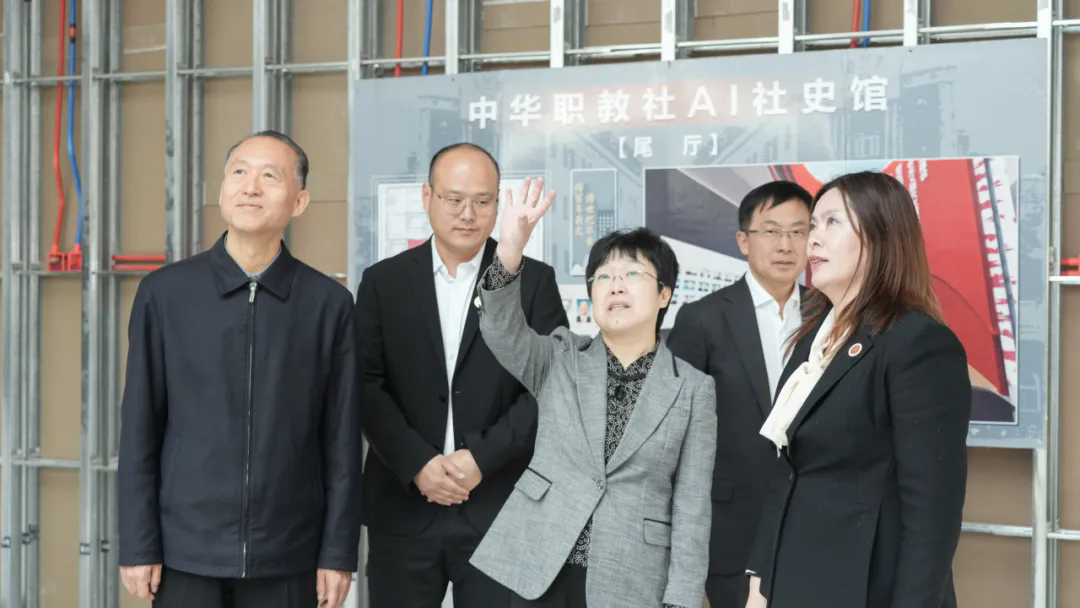 随后,郭彩云来到建设中的中华职教社AI社史馆,实地考察项目进度,听取关于规划设计及实施方案的详细汇报。郭彩云充分肯定学院在传承职教文化、推动职业教育创新发展方面的积极探索,并就馆内展陈内容、技术应用等环节提出指导性意见。郭彩云强调,要在中华职教社总社的指导下,充分发挥大连枫叶职业技术学院人工智能方面的优势作用,将AI赋能职教历史,打造集科技、教育、展示、研究于一体的现代化社史馆,使其成为传承职教精神、展示职教成果的重要窗口。