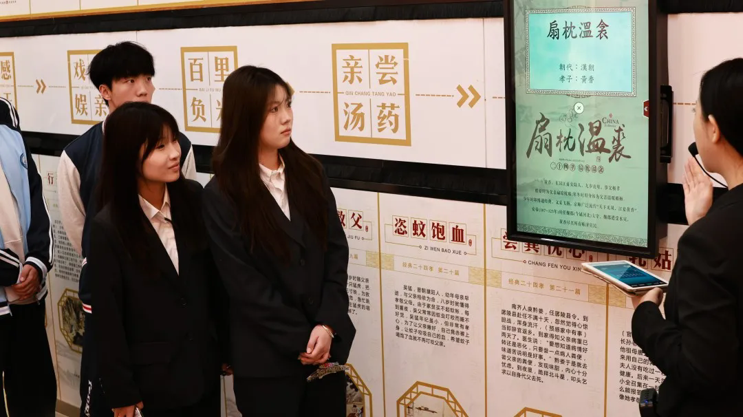 青春的活力与廉洁的庄重相互交融,在这里,3D裸眼交互技术营造出奇幻的氛围,让大家仿若置身于生命起源的探索旅程,深刻领悟到生命的纯粹与珍贵。滑轨触控显示屏上,一个个孝爱美德故事如璀璨星辰,照亮了同学们寻觅人生志向的道路。