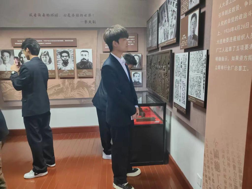 在张玲玲老师的带领下,入党积极分子们有序地参观馆内的各个展区。一幅幅珍贵的历史照片、一件件历经沧桑的革命文物,生动地再现了大连工人阶级在党的领导下,为民族独立、人民解放而英勇斗争的光辉历程。大家驻足凝视,认真聆听讲解,不时拿出手机拍照记录,想要将这些珍贵的历史记忆留存。