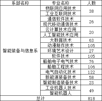 智能装备与信息系现有包括软件技术、动漫制作技术、船舶工程技术、船舶电子电气技术、新能源装备技术等17个专业。系部各类专业实训室18个,省级示范性实训室1个,高校毕业生专业转换基地2个。