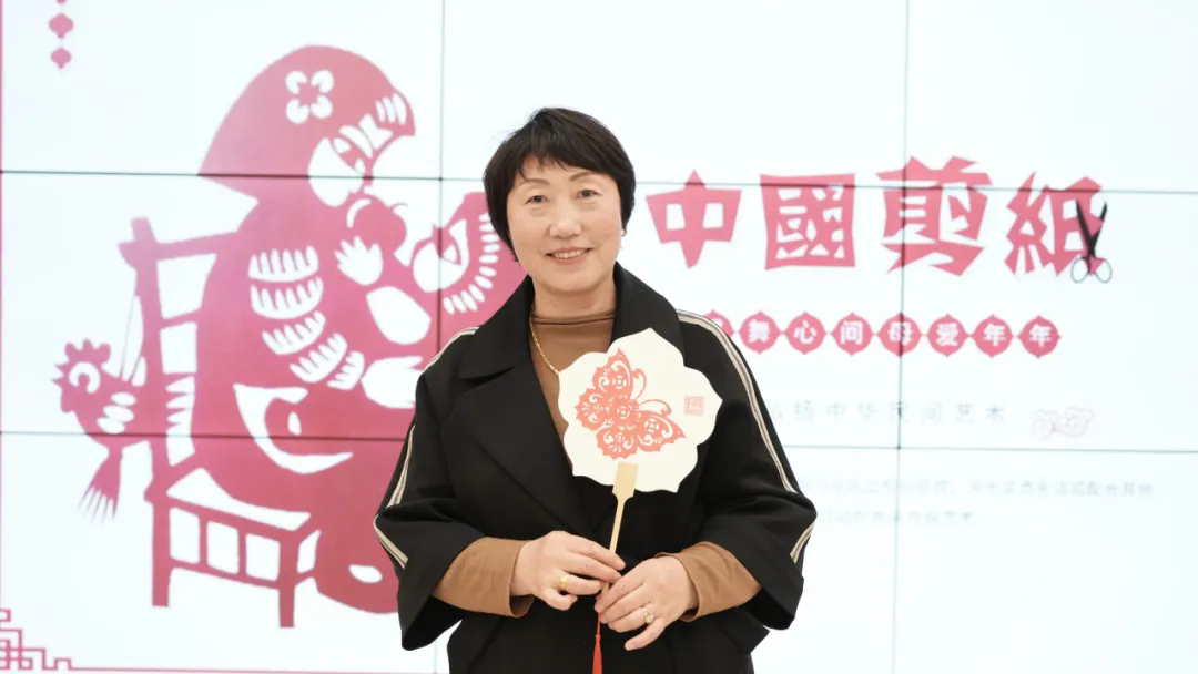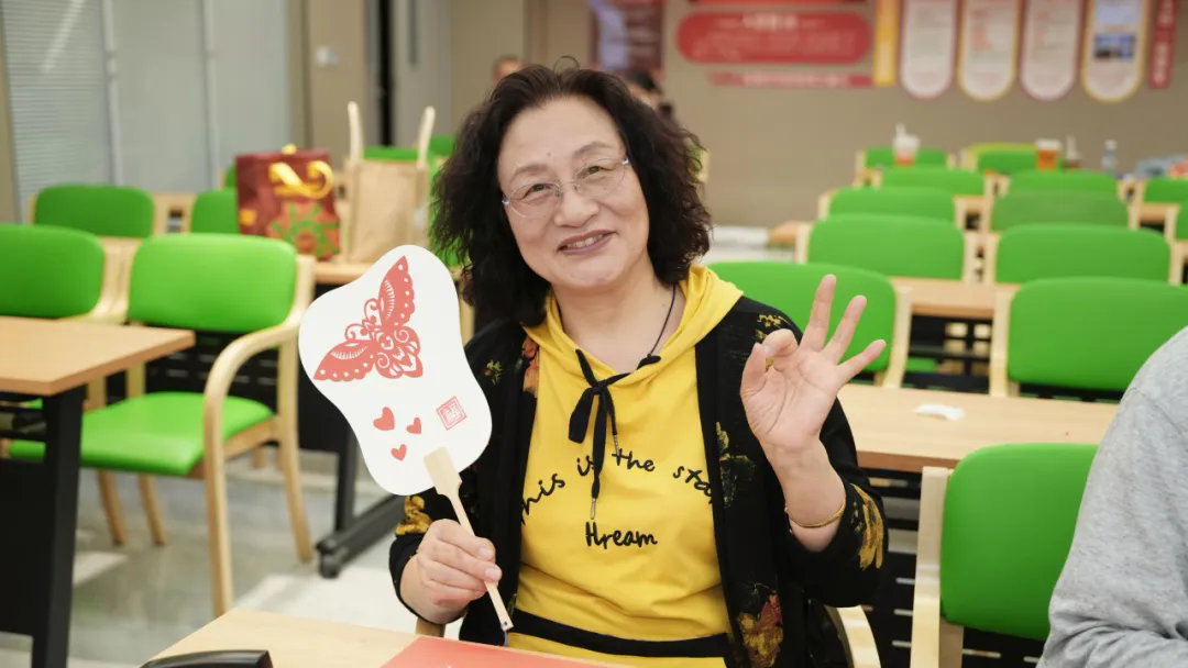 "月牙纹要如柳叶舒展,蝶翼须藏十二道锯齿纹。"杨澜老师手持红纸,带领学员们复原各式传统纹样。在剪纸过程中,学员们将现代审美与传统技法融合创新,创作出《蝶舞心间》《岁岁安康》等主题作品。剪纸作品化作承载感恩的剪纸扇,非遗技艺焕发出跨越时代的温度。