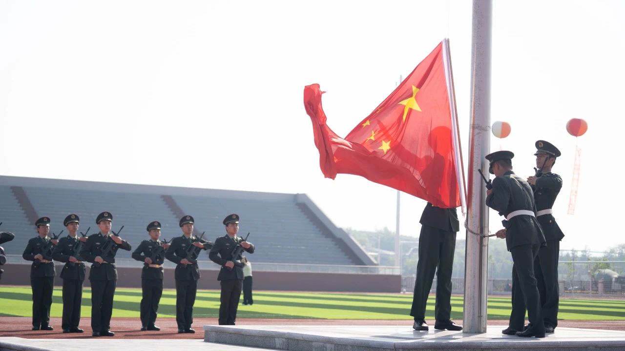上午8点,开幕式在激昂的旋律中拉开帷幕。首先举行升国旗仪式,伴随着庄严的国歌声,五星红旗冉冉升起,现场气氛庄重而肃穆。随后,大连新港通关技工学校同学们带来了啦啦操表演《青春无限》,轻盈的舞姿与动感的节奏瞬间点燃全场热情,国际友人的吉他弹唱节目更是让现场掌声雷动。
