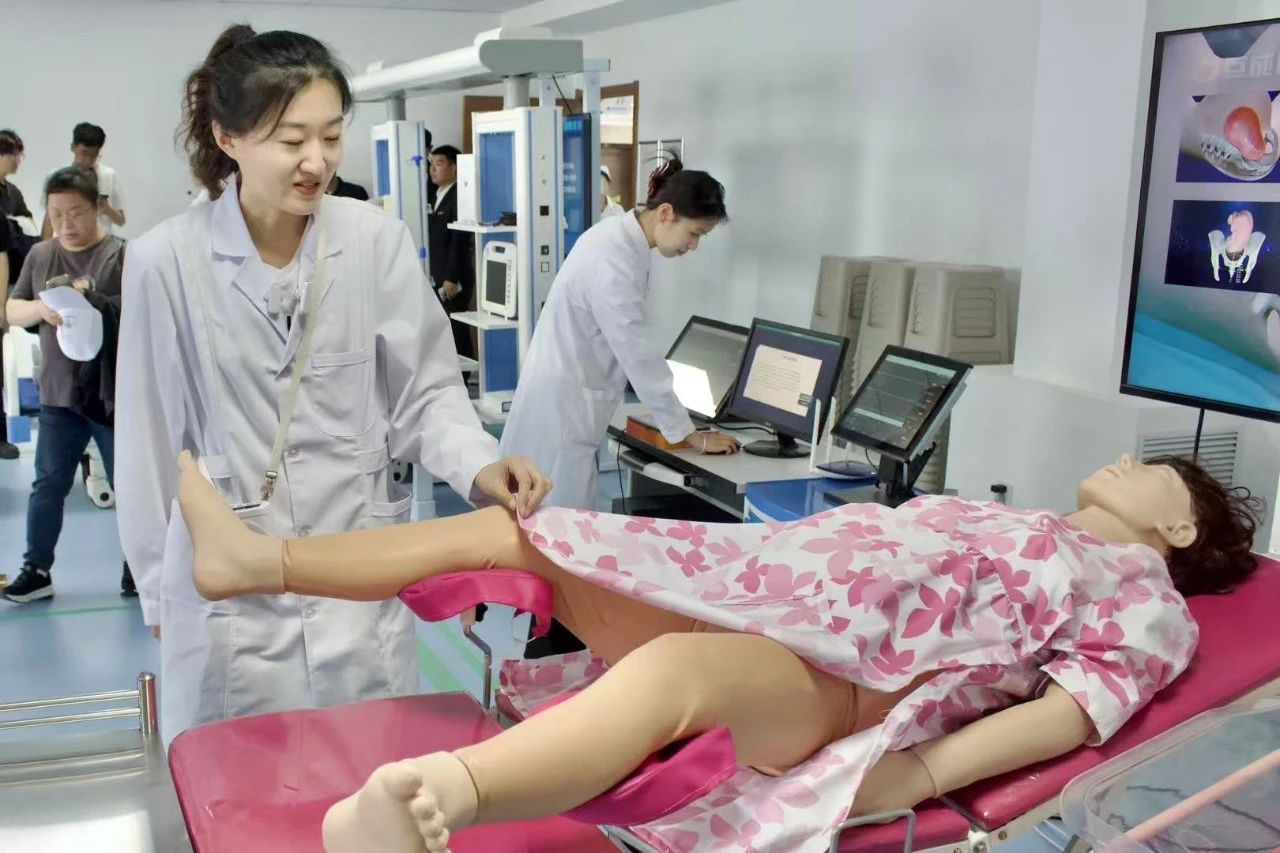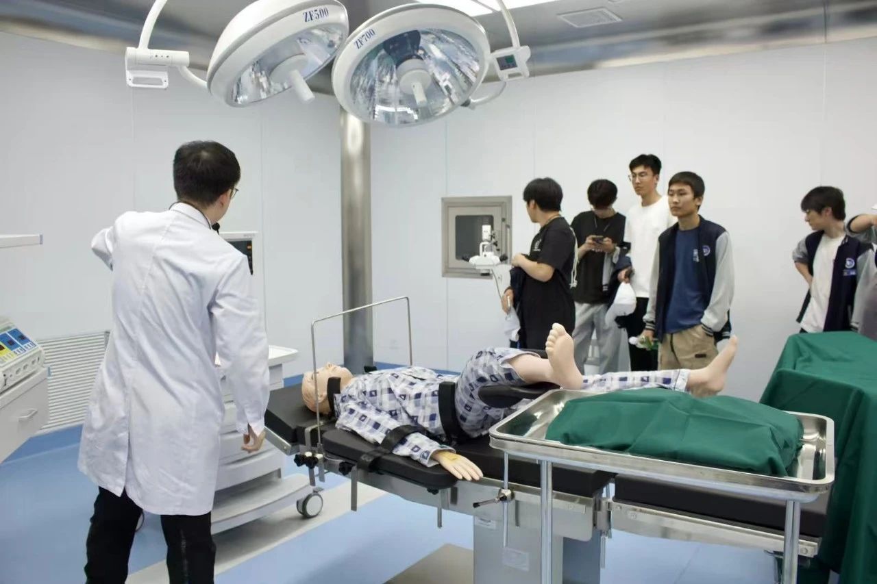 随后,研学队伍走进学院以三甲医院标准建设的17000平实训中心。该中心共分为三大区域:医疗实习区域、教学实训区域、竞赛考核区域。包含53个实训室,涵盖内外妇儿实训室、康养实训室、眼视光实训室、基础医学实验室等、医学美容实训室、MISSE考核广场等。在专业讲解员引导下,学生们沉浸式体验了医院实训场景,近距离接触前沿医疗设备,直观感受智慧医疗与临床实践的深度融合,对护理职业的实践要求与发展前景有了全新认知。