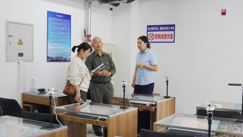 验收中,专家严格检查考场硬件设施。仔细查看布局规划,确保符合考试要求;检测发现,考场电脑性能良好,可稳定运行考试软件;网络顺畅,能实时传输数据;监控全方位覆盖无死角;应急供电设施正常备用,可保障突发情况考试顺利进行。