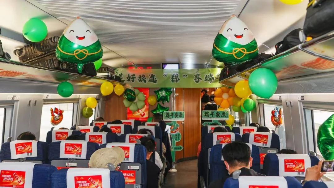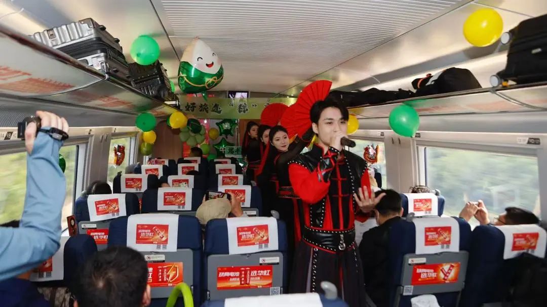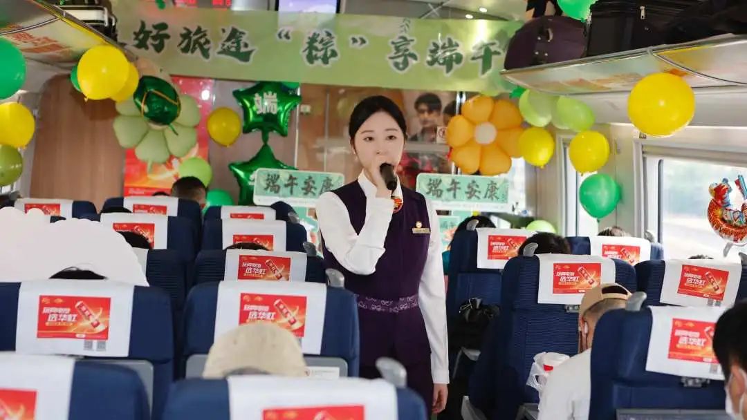 在端午佳节来临之际,从大连北开往武汉的G2625次列车上,一场充满温馨与欢乐的 “美好旅途,粽享端午” 主题文艺活动温暖了无数旅客的心。而在这场活动中,来自大连枫叶职业技术学院经济管理与服务系22级高速铁路客运服务专业的臧振博、曲可心、梁鑫茹三位学生,凭借出色表现成为舞台焦点,不仅为旅客带来了难忘的体验,更充分展现了枫叶学子的卓越风采。