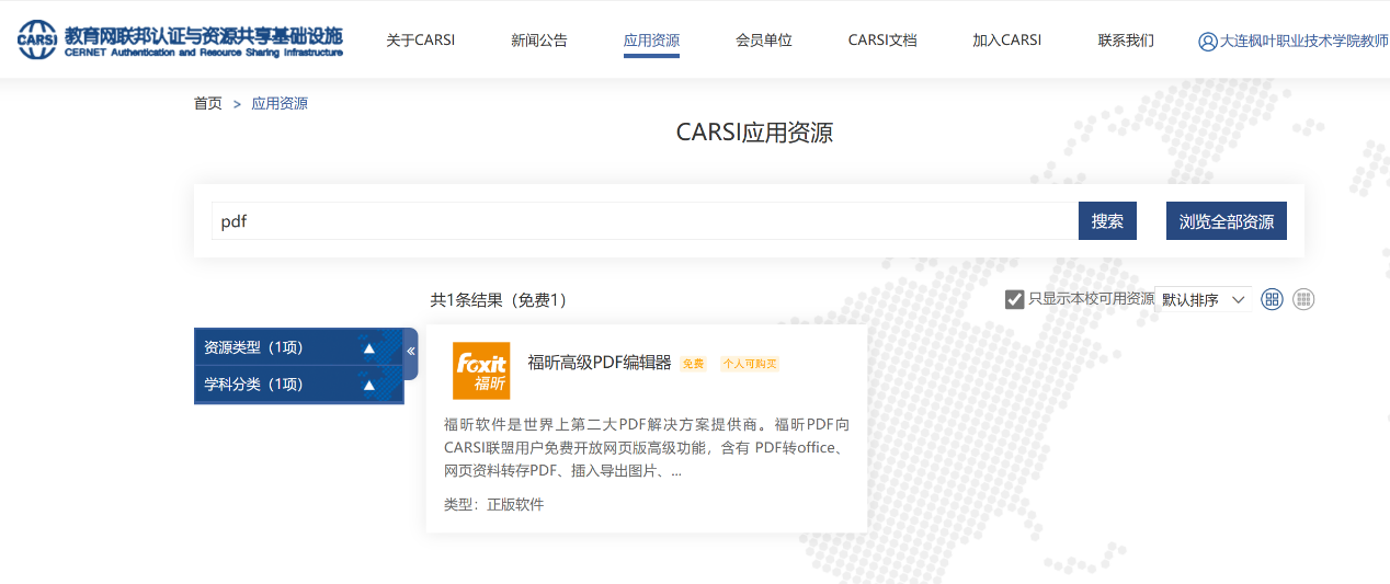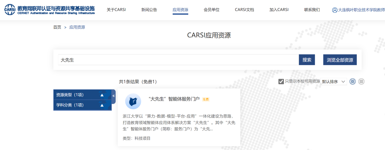 大连枫叶职业技术学院正式接入CARSI资源共享平台,筑牢教学科研数字化转型新根基