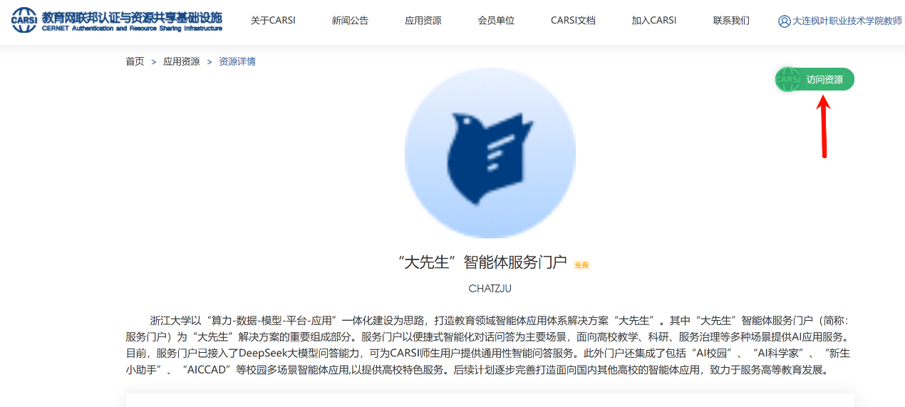 在资源界面搜索大先生关键字即可找到“大先生"智能体服务门户。