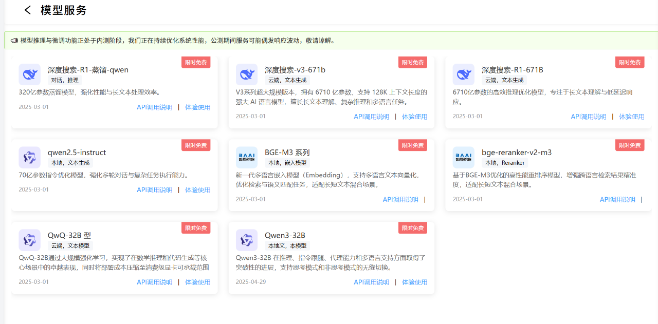 模型广场体验更多不同模型技能。