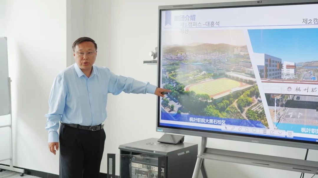 会上,我院继续教育与国际合作交流学院王忠泽院长为东明大学代表团详细介绍了集团和枫叶职院的最新发展与未来版图。
