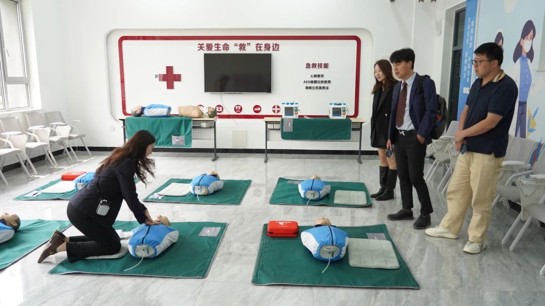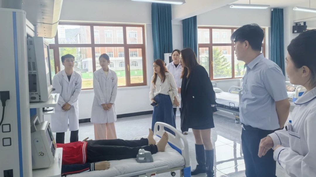 下午,东明大学代表团前往大黑石校区,参观护理产业学院实训室。护理产业学院副院长孙连碧向代表团介绍了学院在护理专业领域的教学成果与实训设施。东明大学代表对我院的实践教学能力和护理专业建设水平表示高度赞赏,并期待未来在护理专业开展更多合作。