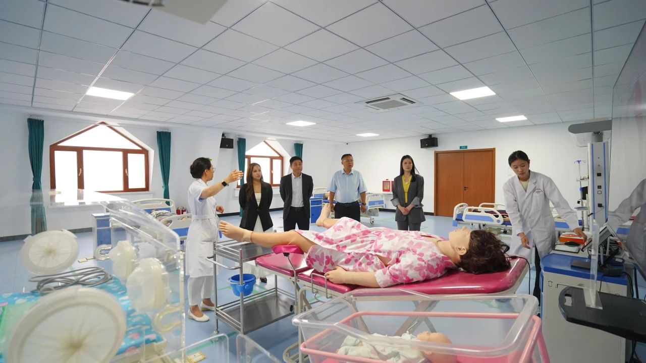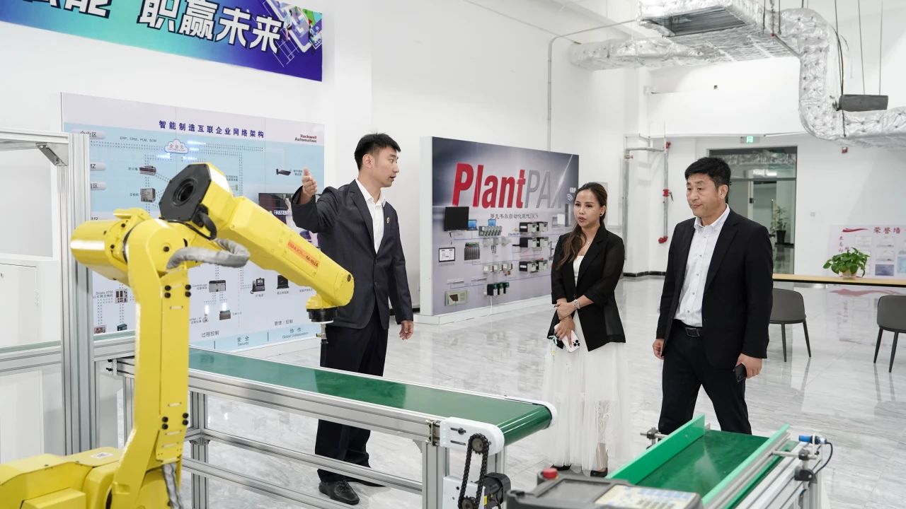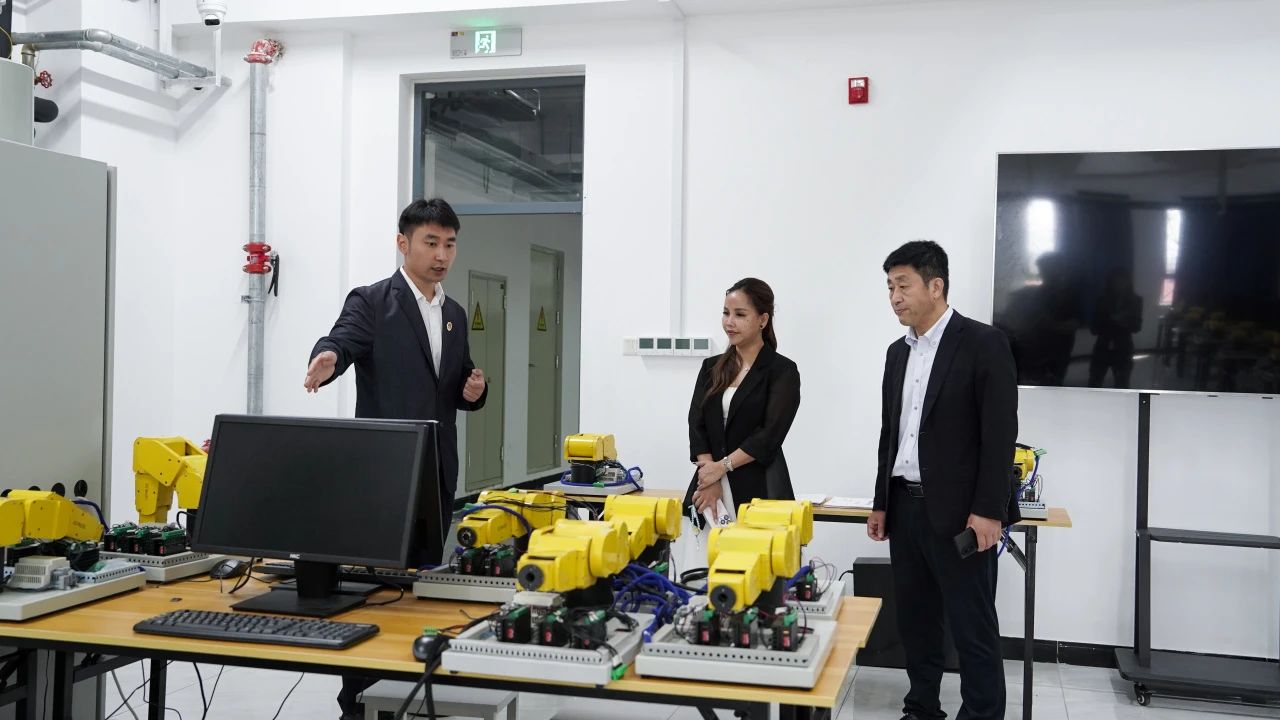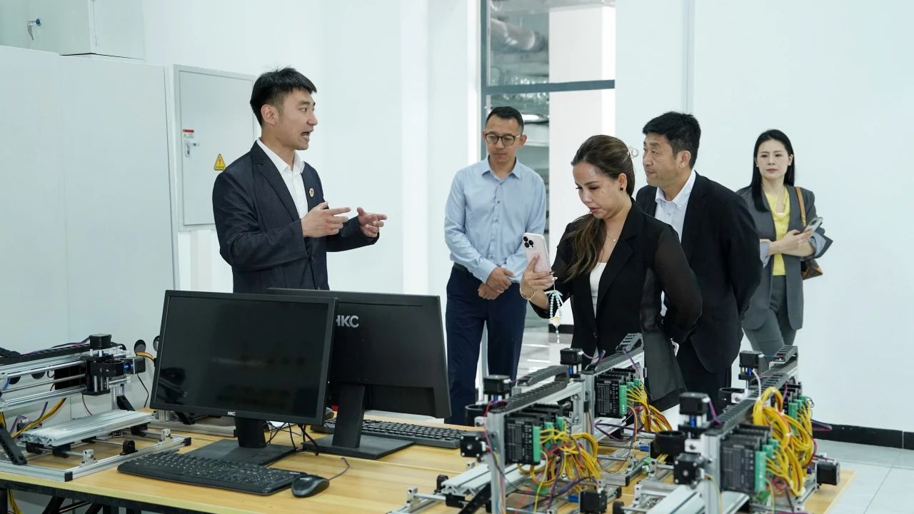 印尼考察团一行首先来到各院系实训室进行实地参观,详细了解了实训设备的配置情况、教学场景布置以及学生实操的具体流程,并对我院的实训教学模式及校企深度共建的实训基地建设给予高度评价。