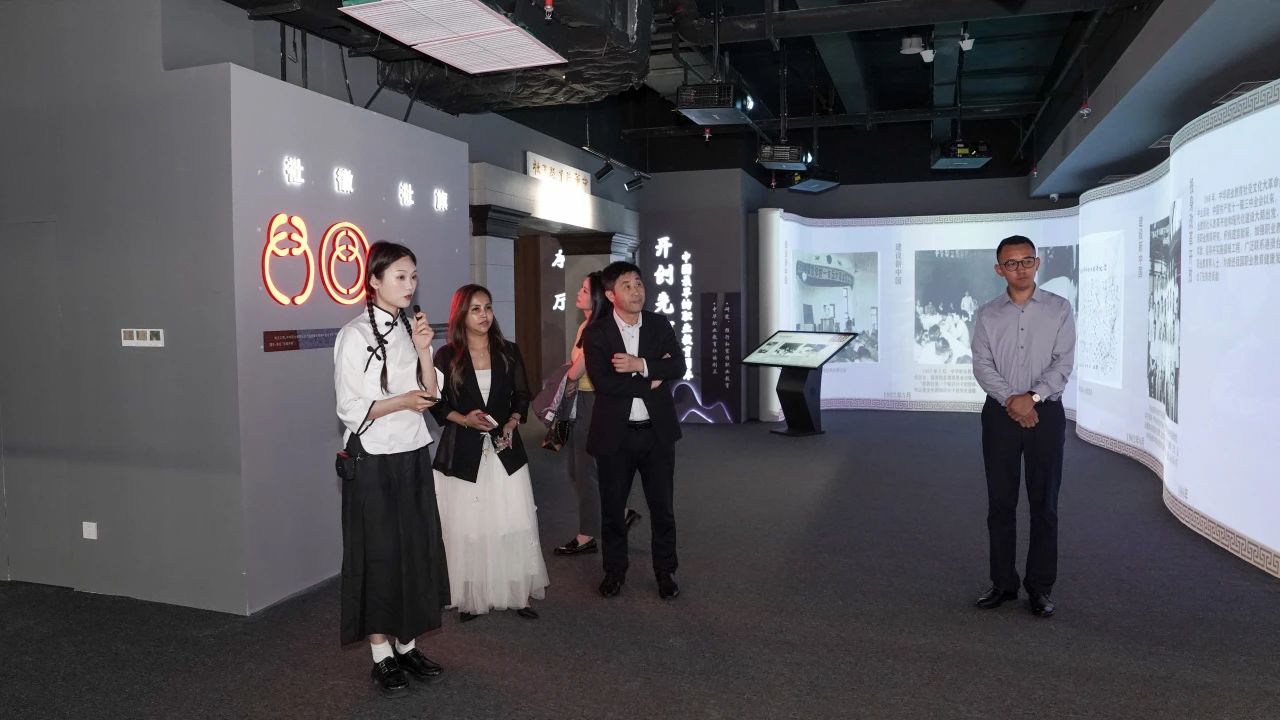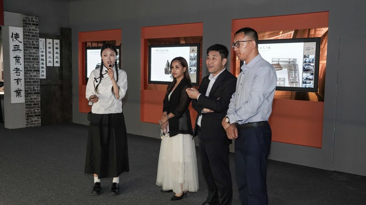 紧接着,印尼考察团一行来到了五楼的中华职业教育社社史馆。馆内借助智能导览、全息影像、数字人讲解等前沿科技手段,生动地展现了职业教育在不同时期的发展历程和重要成就。这种集历史陈列与现代科技融合于一体的现代化展馆建设理念,给印尼考察团一行留下了深刻印象。