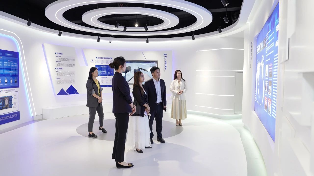 随后,印尼考察团一行来到学院图书馆一楼的枫叶AI教学设备厅。该厅通过一系列丰富的实物展品以及专业人员讲解的方式,全面展示了我院在职业教育领域的前沿技术应用与教学成果,让印尼考察团一行对我院的整体实力和办学特色有了直观的认识。
