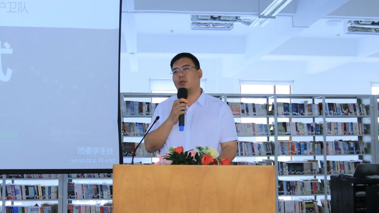 学院副院长高成林阐述国旗护卫队成立的重要意义,并对国旗护卫队提出期望与要求,鼓励队员们以高度的责任感和使命感,守护国旗尊严,传承爱国精神,共同为学院发展和国家建设贡献力量。
