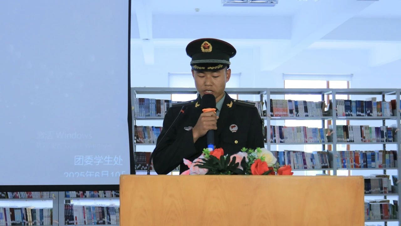 国旗护卫队队员代表高文涛登台发言,言语间满是加入队伍的荣光与自豪。他郑重承诺:将以严苛标准淬炼自我,恪守护卫职责,在刻苦训练中磨砺意志,以挺拔身姿与赤诚之心守护国旗尊严,绝不辜负学院重托与师生期待。