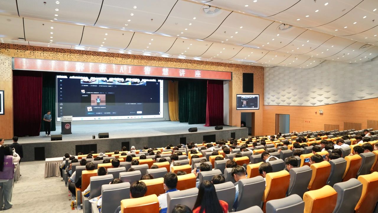 在解密AI智慧讲座上,专家不仅以贴近生活的案例,生动剖析AI给日常生活带来的巨大变革,还现场演示并讲解了多款AI软件的使用方法。同学们跟着专家的操作步骤,初步掌握了这些热门AI工具的基础操作,现场气氛热烈。