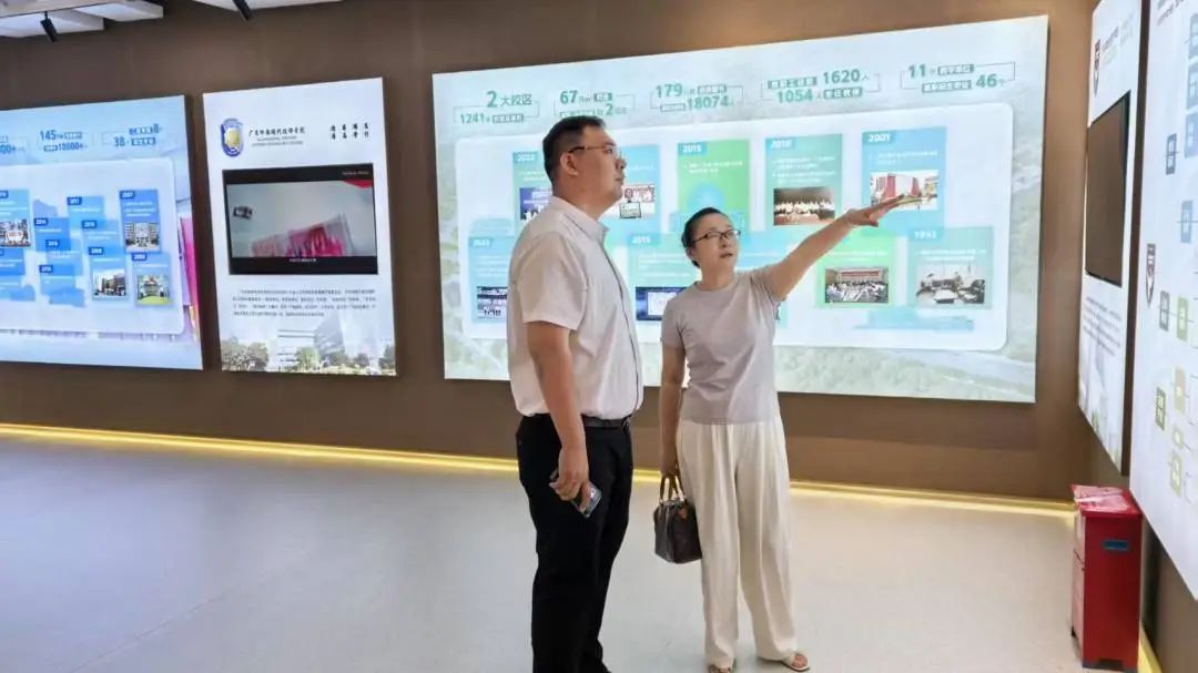 调研期间,双方首先参观了集团展示馆、专业展示及党建馆,深入了解广州岭南教育集团及岭南职业技术学院的专业建设成果与党建引领实践。