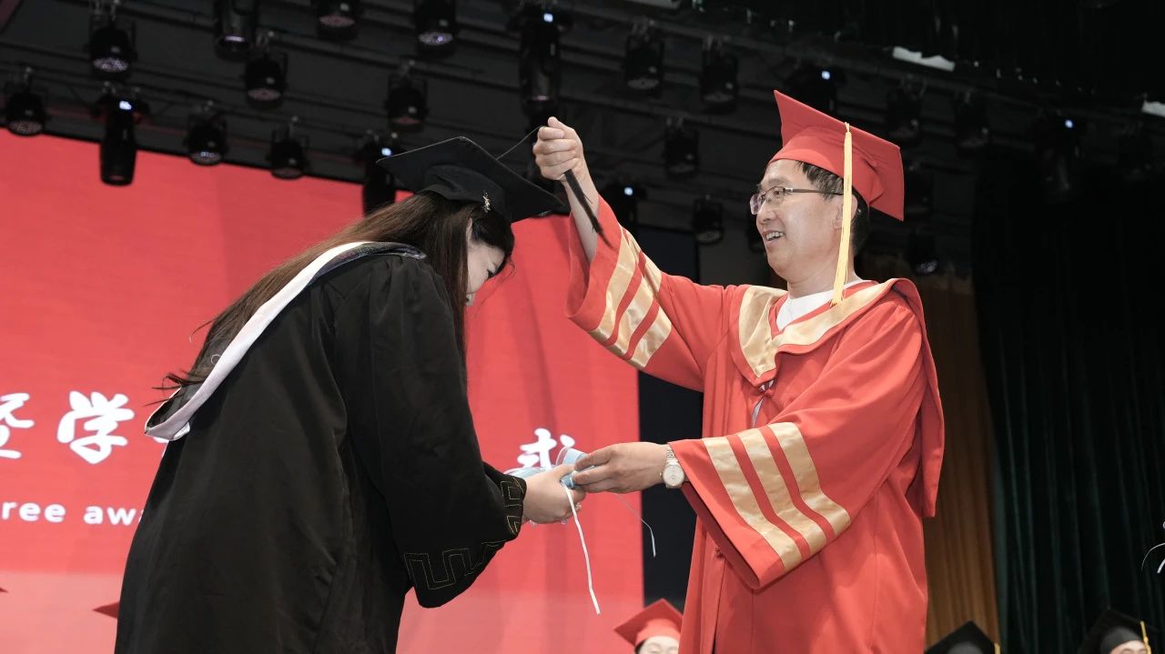 ▲学院党委书记/院长杨捷为学生授予本科学士学位