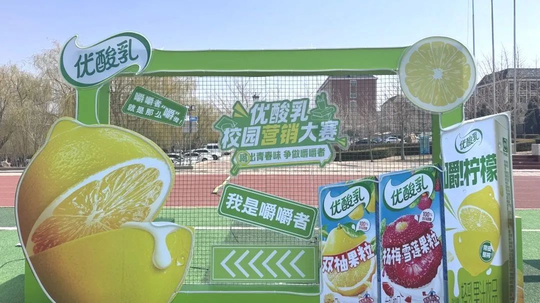 现场舞台左侧有伊利品牌赞助商为我们准备的互动专区,同学们可以在观看比赛之余参与游戏互动,有机会获得神秘礼物哦!