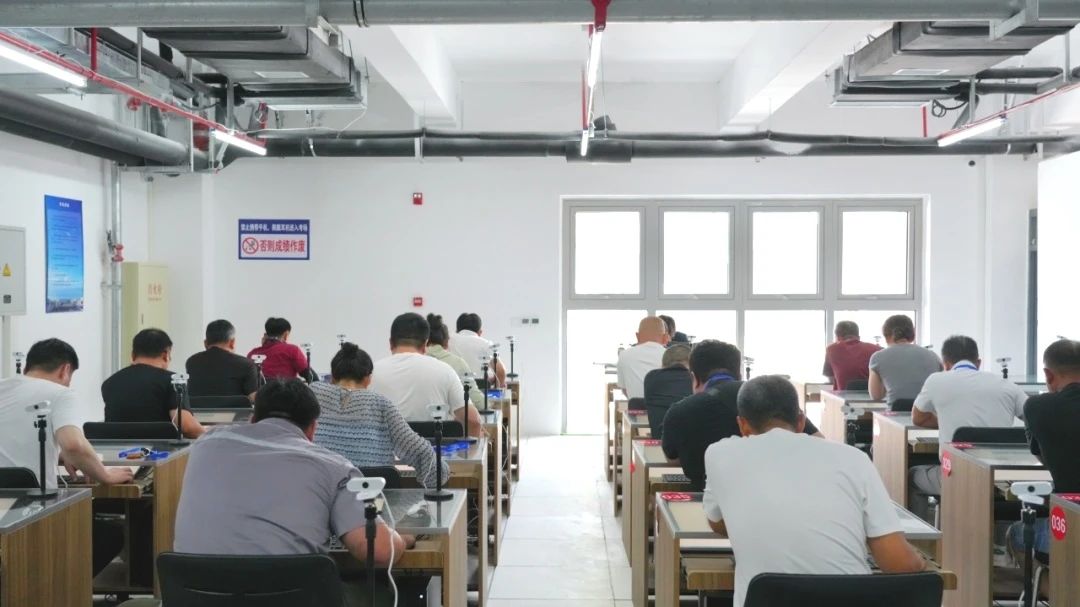 7月30日,50余名考生参加一般行业考试。考试流程严格规范,采用 “人脸识别 + 双证比对”核验身份,监考员宣读规则。