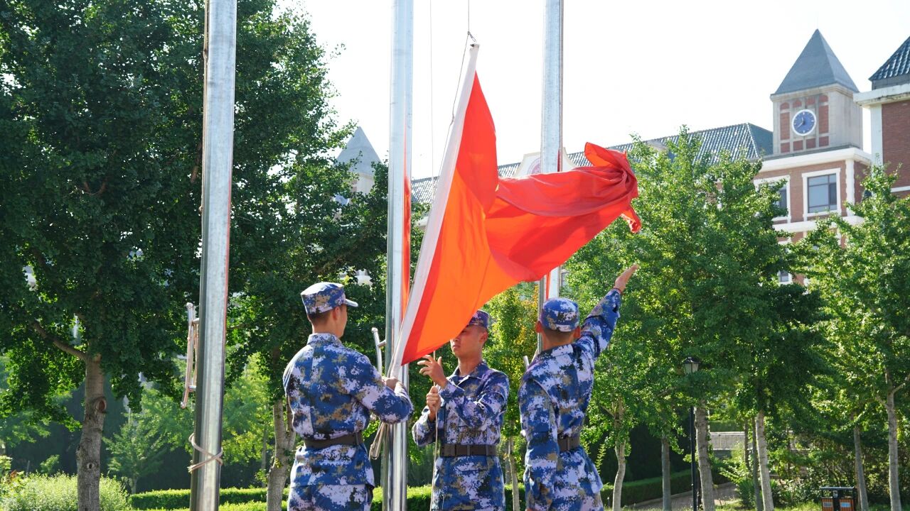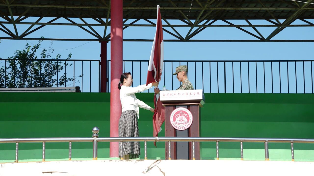 党委副书记金晓晖、副校长张冬冬庄重地将校旗授予双校区总教官。这面校旗不仅承载着学校的荣誉,更寄托着对全体参训同学的期望,希望同学们能传承军人作风,在军训中砥砺前行。