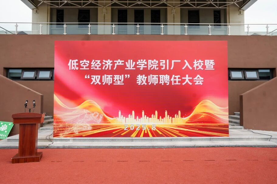 为切实将杨萍董事长“引厂入校”战略转化为专业建设实效,推动无人机应用技术专业与产业需求精准对接,8月27日下午,我院低空经济产业学院隆重举办“引厂入校”暨“双师型”教师聘任大会。此次大会不仅是我院深化育人模式改革的重要实践,更承载着为低空经济产业培育高素质技术技能人才的使命,我院师生代表、合作企业代表及部分新生与家长齐聚现场,共同见证这一重要时刻。