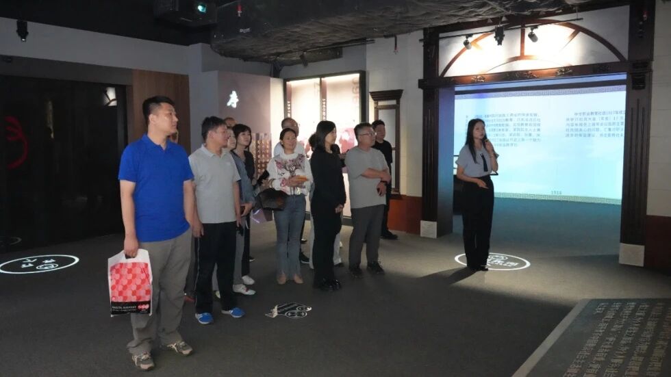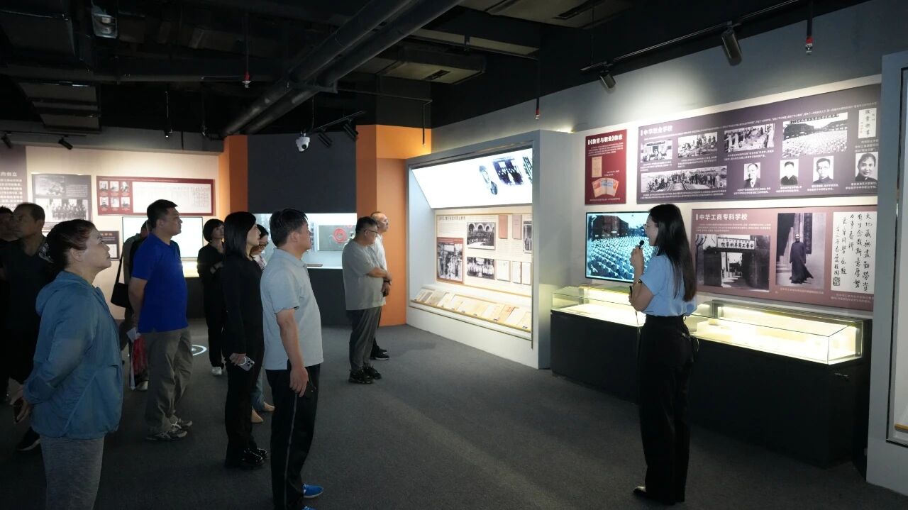 随后,民建会员一行来到中华职业教育社社史馆进行参观。展馆以“AI+职教历史”为设计核心,融合人工智能、VR、大数据等技术,通过数字化场景、全息影像、智能导览及数字人讲解,生动再现黄炎培等先贤的职教实践。民建会员们认真观看了馆内珍藏的历史图片、文献资料和实物展品,并通过数字化技术沉浸式体验了历史场景,在全息影像中与先贤“对话”,深入了解了职教社自成立以来,秉承“使无业者有业,使有业者乐业”的宗旨,在倡导、研究和推行职业教育,为国家培养大批实用人才方面所走过的辉煌历程和作出的突出贡献。