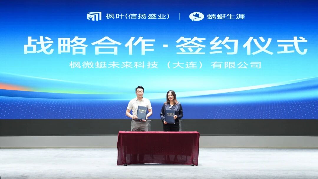 9月29日,大连枫叶职业技术学院与知蜻(大连)科技有限公司战略合作签约仪式在我院七顶山校区报告厅隆重举行,并共同宣布枫微蜓未来科技(大连)有限公司正式成立,此次合作以“融育未来·共谱华章”为主题,标志着双方在“教育+科技”深度融合领域迈出关键一步,为职业教育创新发展注入新动能。
