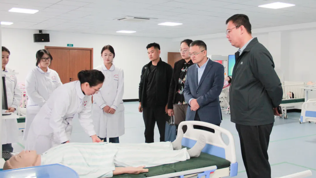 座谈结束后,学院副校长高成林、及护理产业学院相关领导、老师陪同郭洪波、王晶一行走访了护理专业实训中心,实地了解学院护理人才培养的教学设施、实训条件与课程设置,对学院聚焦实操能力、贴合产业需求的办学特色给予高度认可。