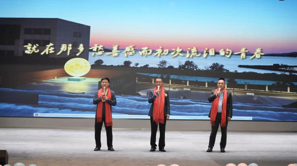 在杨捷校长致辞后,董事助理/校长助理艾立斯、学工部部长王博、七顶山校区学工部部长段正南与全场人员共同合唱歌曲《光阴的故事》。熟悉的旋律中,既有对学院发展历程的回望,也有对辅导员 “以光阴换桃李” 的致敬。歌声回荡在报告厅内,将师生情、同事情、校友情融为一体,为活动增添了浓厚的情感色彩。
