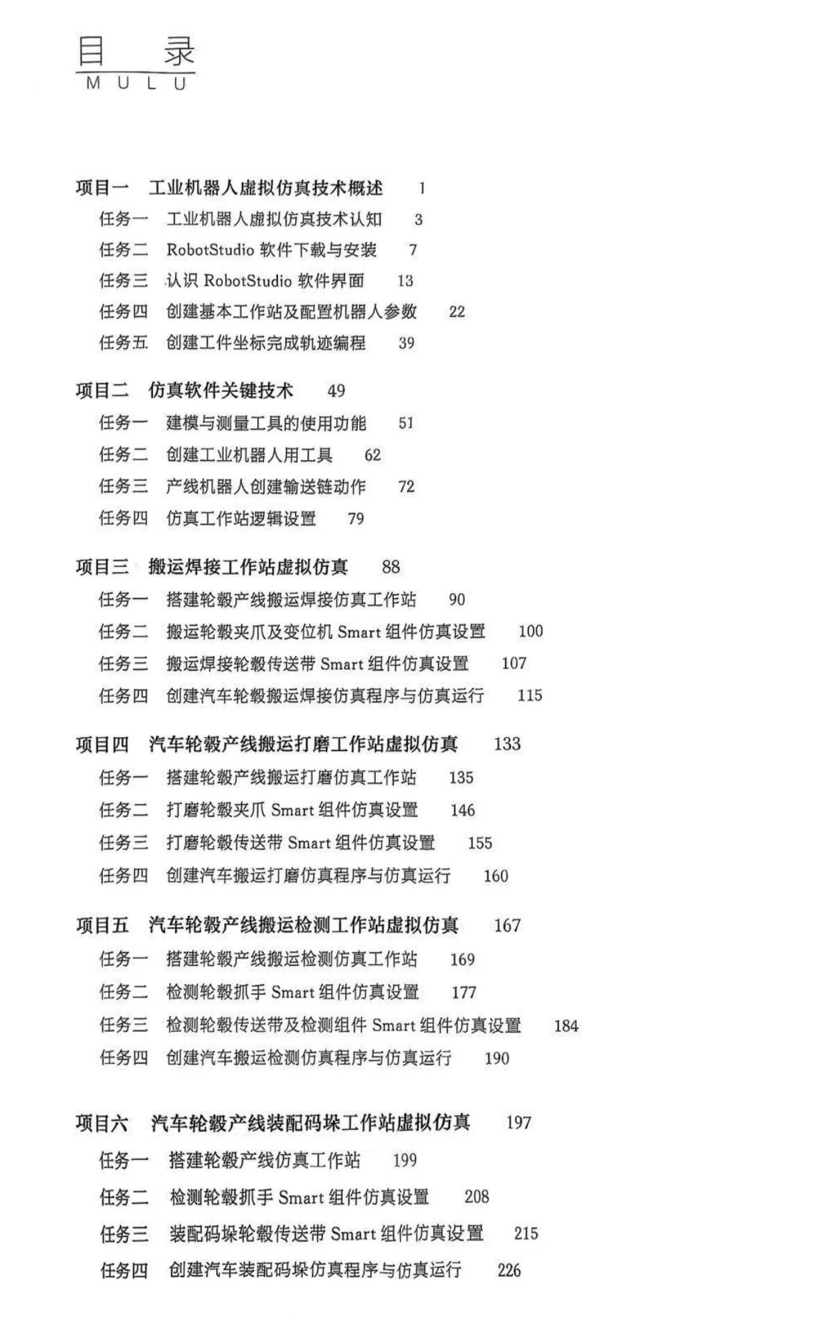 该教材为高等职业教育新工科系列教材·智能制造系列,以党的二十大报告中“坚持把发展经济的着力点放在实体经济上,推进新型工业化,加快建设制造强国”的重要指示为指引,紧密对接“制造强国”战略需求,同时作为大连金普新区(大连经济技术开发区)市域产教联合体专项支持建设项目及大连枫叶职业技术学院立项新形态教材《工业机器人虚拟仿真技术的应用与实践》,具有深厚的政策背景与实践根基。全书以“项目导向、任务驱动”为编写逻辑,围绕工业机器人虚拟仿真的典型工作场景,设置六大项目、二十余个任务,涵盖Robot Studio软件操作、工作站搭建、离线编程、典型产线仿真等核心内容。从基础的工程文件创建到复杂的汽车轮毂加工产线上下料、轮毂产品码垛出入库等场景仿真,每个任务均以真实生产案例为载体,通过“任务导入—知识准备—任务实施—素质课堂—总结拓展”的递进式结构,将技术原理与操作技能有机结合,助力读者在实践中掌握虚拟仿真技术的核心要义。