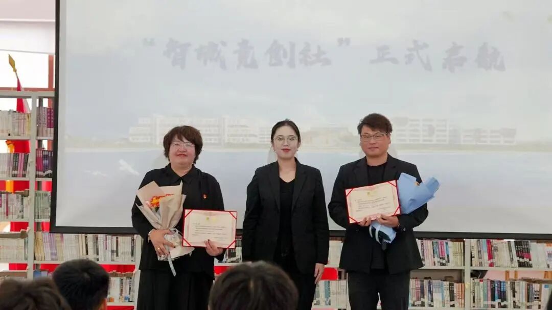 表彰环节中,张冬冬副校长为获奖学生颁发证书,向指导教师颁授奖杯与鲜花,对师生展现出的拼搏协作精神给予肯定,并强调竞赛对提升职业素养的关键作用。指导教师宋艳、周岩在分享备赛经验时提到,跨专业组队是赛事中取得突破的重要因素,赛项内容与行业标准、职业证书要求高度契合,学生们也在协作中更全面理解了岗位内涵和职业要求。学生代表潘胜博则介绍了即将成立的“智城竞创社”培养体系与招募要求,向同学们发出加入邀请。当日,社团开放招募便吸引80余名学生报名,展现出新型育人模式的吸引力。
