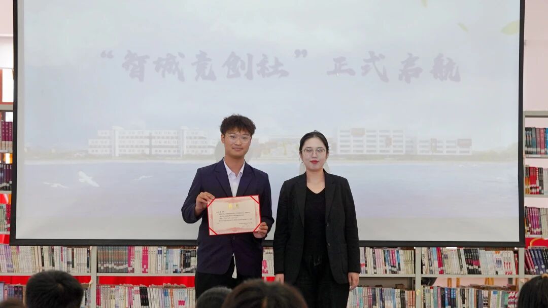 大会核心环节,“智城竞创社”正式成立。区别于传统兴趣社团,该社定位为“职业教育综合育人平台”,以“跨专业组队、岗课赛证贯通、企业导师赋能”为核心,旨在搭建从课堂到岗位、技能到竞赛的全周期成长通道。社团面向全校开放,下设跨专业项目组,通过“基础培训—模拟实战—企业跟岗—竞赛冲刺”四阶体系助力学生多维成长。社团将成为推动课程对接岗位、竞赛反哺教学、证书检验成果,“岗课赛证”融合的试验田。目前,社团已与3家头部企业建立合作,未来将引入真实项目进课堂、组织企业跟岗实践,促进“学中赛、赛中岗、岗证通”的有机衔接。