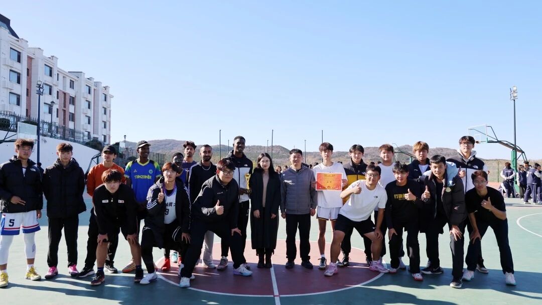 11月13日,大黑石校区篮球场上旌旗招展、呐喊阵阵,智慧城市服务产业学院“热血篮球,当燃不让”首届国际篮球交流赛正式收官。学院院长辛赏月、学生管理副院长姜占原、教学副院长蔡丽丽及干事刘宇轩、史宸雨、全体专职辅导员老师现场观赛指导,吸引校内近百名师生到场助威,共同见证这场跨境篮球盛宴。
