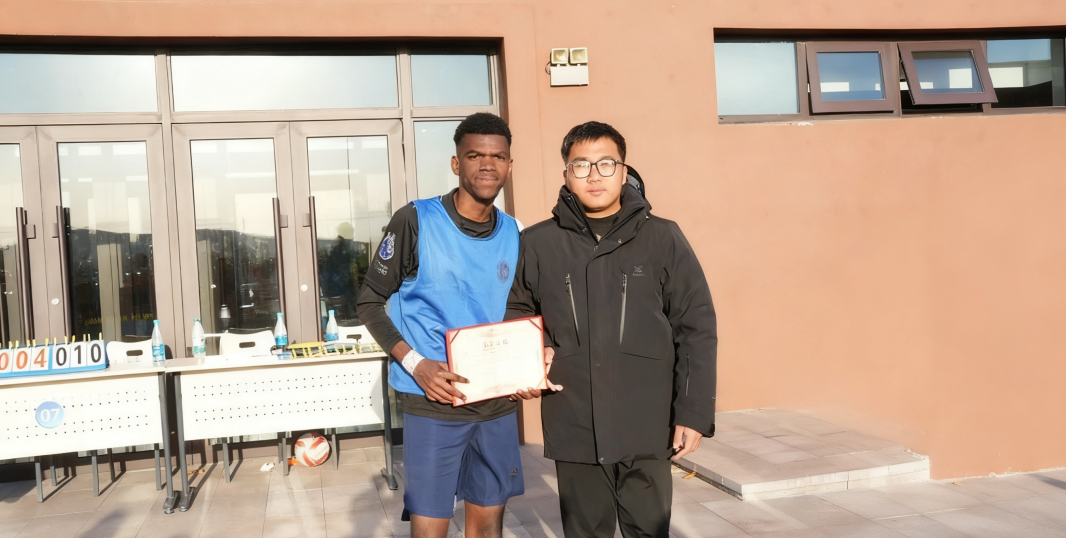 比赛在欢乐和谐的氛围中圆满落幕。大连理工大学7号球员凭借多次精彩进球,实力斩获大连理工大学队“最佳射手”称号;我院留学生Amal Ali Tahir Fatawi也以亮眼表现,获评大连枫叶职业技术学院队“最佳射手”。国际部金博文主任与学工部裁判李赓希老师分别为获奖球员颁奖,这份荣耀不仅是对球员们赛场表现的肯定,更是两校友谊的美好见证。