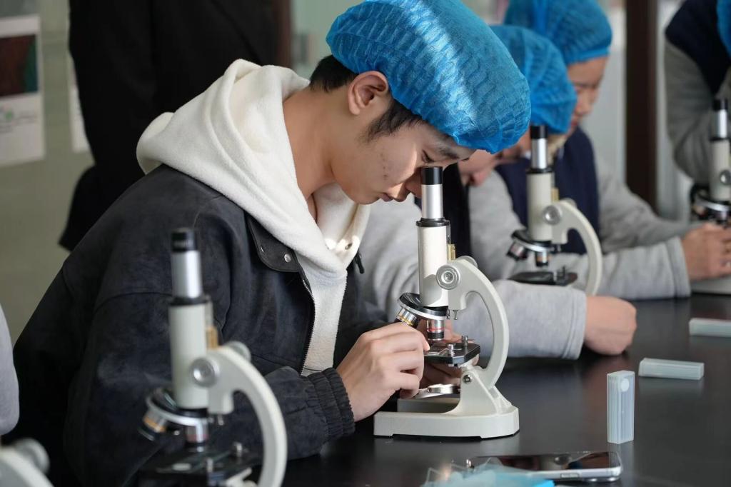 在晶泰医学检验所,同学们开启了一场“零距离”探秘医学检验的专业之旅。在科技馆展区,通过互动体验装置、图文展板与专业讲解,大家系统了解了医学检验技术的发展历程与前沿应用,直观感受科技赋能医疗的强劲动力。随后,在实验室工作人员的引导下,同学们近距离观摩显微镜操作,认真学习细胞涂片、样本化验等基础技能,详细记录病理检测的全流程规范。从样本接收、试剂调配到结果分析、报告出具,每一个环节的严谨操作都让同学们深刻认识到医学检验工作“精准至上”的职业准则,现场提问踊跃,学习氛围浓厚。