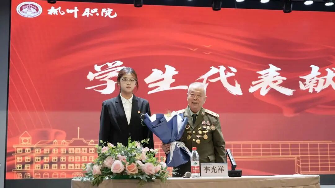 为推动红色思政教育长效化、深化校社协同育人机制,特聘请李光祥老将军为大连枫叶职业技术学院“红色思政特聘导师”。学生工作第二党支部书记、七顶山校区学工部部长段正南现场为老将军颁发聘书并送上纪念品。
