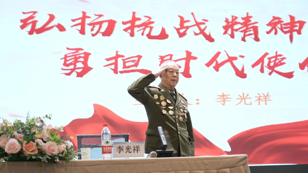 李光祥老将军以朴实真挚的语言,串联烽火岁月的抗战记忆与新时代的使命担当,带来一场深入浅出、感人至深的授课。他深情讲述革命先辈浴血奋战的壮阔历程,深刻解读抗战精神核心要义,带领全体师生共同回应“爱国三问”、唱响《没有共产党就没有新中国》,更着重强调习近平新时代中国特色社会主义思想是青年成长成才的根本遵循,唯有以这一思想铸魂育人,才能坚定青年的马克思主义信仰、中国特色社会主义信念与中华民族伟大复兴信心。