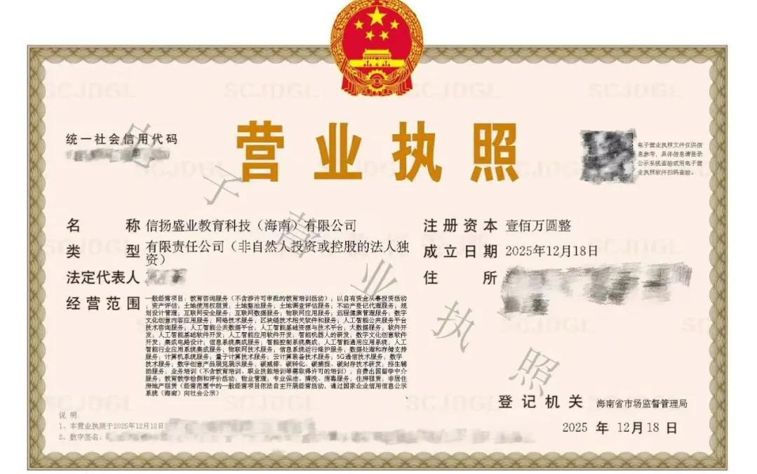 18日,成立信扬盛业教育科技(海南)有限公司,构建“大连+香港+海南”三地联动格局,为资本化转型奠定基础。